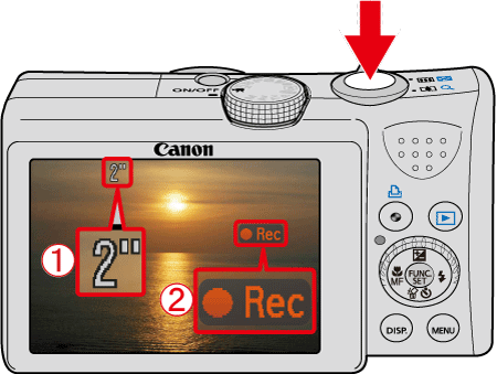 [Rec]出現在[液晶螢幕]上。一旦拍攝開始,將手指從<快門按鈕>鬆開。