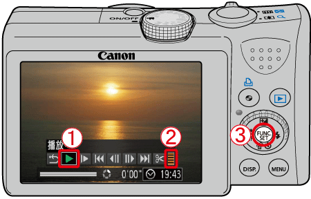 ) 播放短片。按下 <FUNC./SET> 按鈕(