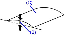 - 根據媒體類型,紙張可能髒污或即使紙張沒有向內捲曲也不能正確送入。在此情況下,按照下列步驟在列印前將紙張向外捲曲 0.1 英吋/ 3 mm (B)。這可能會改善列印結果。