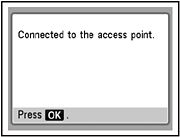 - 如果出現「連接到存取接入點失敗」,按[OK]按鈕,確認網路密匙正確,然後重新輸入。如果仍然無法建立連接,參閱紙制手冊:「網路安裝疑難排解」。