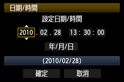 第一次開啟電源或日期/時間被重置時,將出現日期/時間設定螢幕。按以下步驟設定日期/時間。請注意:記錄到影像上的日期/時間取決於此處的日期/時間設定。務必正確設定日期/時間。