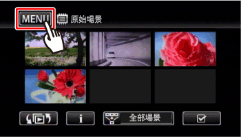 ] 從內置記憶體索引螢幕切換至記憶卡索引螢幕 (或反之) 以顯示「原始場景」或「播放清單」螢幕。