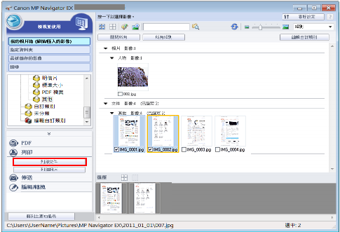 使用 MP Navigator EX,您可以一次列印多張掃描的影像、以指定的品質列印等。