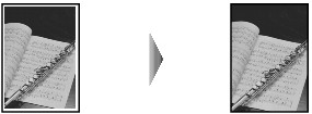 - 影像四周可能出現窄的黑框。此功能僅取消黑框。如果掃描的書籍太薄或在窗邊或明亮的環境使用本機時,可能仍有黯淡的黑框。如果原稿色彩較暗,本機無法區分色彩和陰影,這可能造成摺痕處輕微剪裁或陰影。