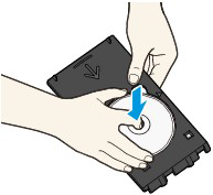 - 拿可列印光碟時請拿著其邊緣。請勿觸摸標籤面(列印面)或記錄面。