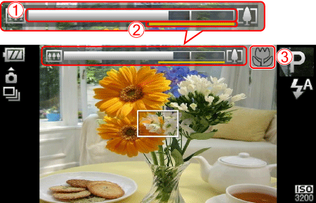 [變焦欄] 出現在螢幕上。相機在變焦欄的