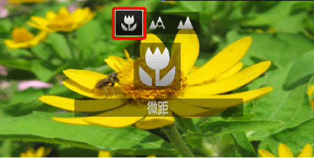 如果近距離拍攝主體,但在一般拍攝範圍內無法輕鬆對焦主體,將一般模式切換為 [微距] (