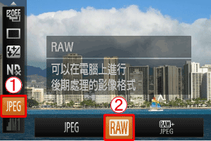 拍攝 RAW 影像 (PowerShot G12)