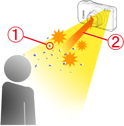 在灰塵和髒物上反射的閃光要防止出現白圈,最好在無懸浮顆粒的環境中拍攝影像,但是如果無法做到這一點,可採取以下有效措施。