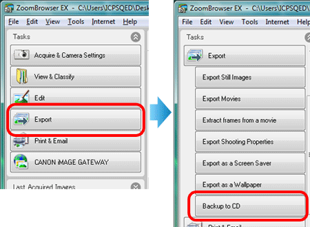 3. 出現以下對話方塊。 按 [匯出(Export)] 和 [備份至 CD(Backup to CD)]。