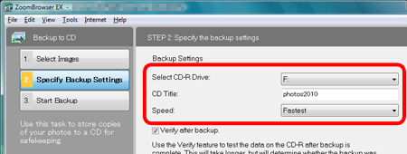 儲存影像至 CD-R/CD-RW 光碟 (ZoomBrowser EX Ver6.7)
