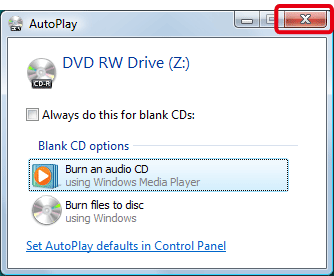 1. 在 CD-R/RW 光碟機中放入 CD-R/RW 光碟。 如果出現如下的視窗,請按一下 [