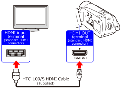 HDMI( 高清多媒體介面) 連接是一種透過一根連接線便可同時實現視頻及音頻連接的全數碼連接方式,十分方便。連接攝錄機至配備有 HDMI 端子的高清電視時,可以享受最高品質的視頻及音頻播放。