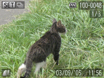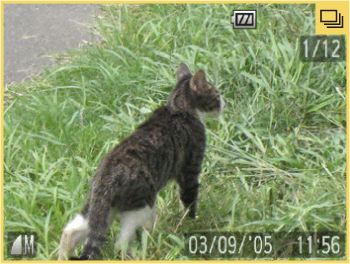) 圖示顯示在螢幕的右上方,則設定完成。播放影像時,以群組形式顯示 [高速連續拍攝] (
