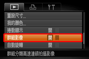 上下按 <方向按鈕> 選擇 [群組播放] (
