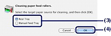 (3) 選擇用於清潔的紙張來源(後端托盤或手動送紙托盤)。