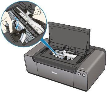 如下圖所示輕輕拉動桿以便更容易運作,然後使用濕棉花籤或類似物品擦拭墨水。