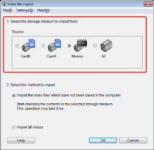 - 匯入尚未儲存於電腦的視頻檔案:匯入尚未匯入電腦的檔案。