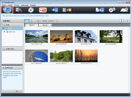電腦:根據選擇安裝的軟件,Transfer Utility 或 VideoBrowser 將自動啟動。