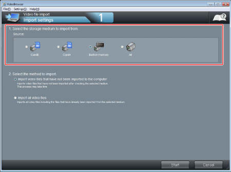1. 按一下 [視頻檔案匯入 (Video file import)]。