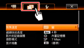 - 如果攝錄機處於影像拍攝模式,請點選螢幕右下角的 [