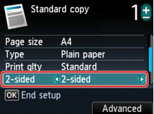 - 如果選擇「標準影印」,則雙面影印設定可與「2 合 1 影印」或「4 合 1 影印」一起使用。