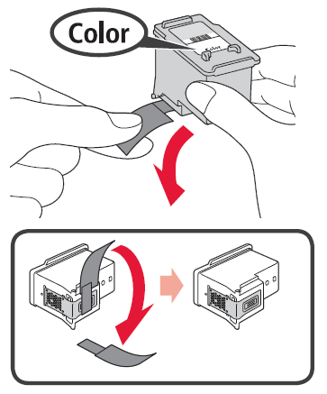 3. 將 FINE 墨盒從包裝中取出,然後撕下保護膠帶。