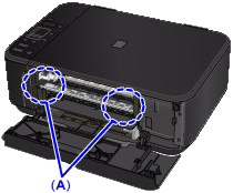 - 本機內部右側或左側空隙 (A) 中是否仍有紙張碎片?