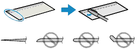 - 如果信封不平整或沒有對齊邊緣,可能會造成信封夾在本機中。確保沒有捲曲或翹起超過 0.1 英吋 (3 mm)。