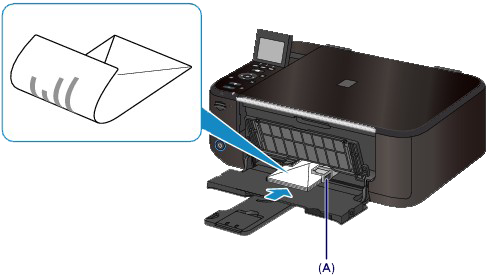 (4) 滑動右側導紙器 (A) 使導紙器對齊信封的兩側。
