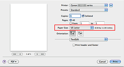按一下「列印 (Print)」。執行列印時,文件將根據媒體類型和大小進行列印。