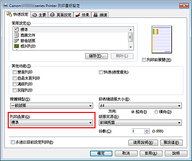 對於「列印品質」,可以根據用途選擇「高」、「標準」及「快速」。