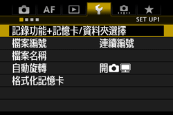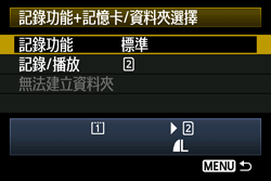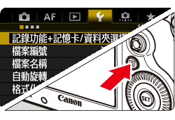 4. 轉動 <速控轉盤> 選擇 [記錄功能+媒體/資料夾選擇],然後按 <SET> 按鈕。