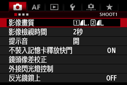 亦可以在按下 <Q> 按鈕後出現的 [速控] 螢幕中進行這些設定。有關詳細資訊,請參閱相機隨附的使用說明書。
