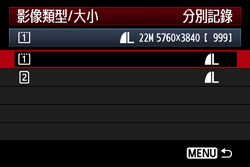 - 有關為每張記憶卡設定影像記錄畫質的詳細資訊,請參閱下方的「設定各記憶卡的影像記錄畫質」。