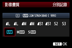 3. 轉動 <速控轉盤> 選擇影像記錄畫質,然後按 <SET> 按鈕。