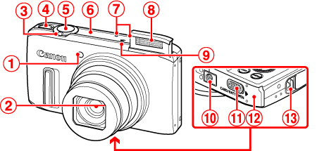 ![]() | 快門按鈕 | ![]() | 記憶卡/電池蓋 |