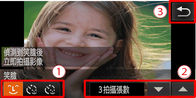 進行設定。( ) | 即使沒有按快門按鈕,相機偵測到笑臉時, 即會進行拍攝。 |