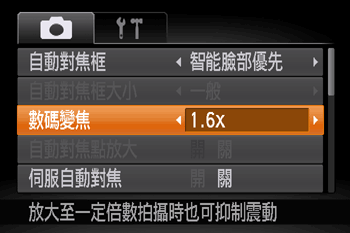 - 設定 [數碼變焦] 為 [1.6x] 或 [2.0x]
