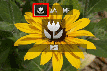 如果近距離拍攝主體,但在一般拍攝範圍內無法輕鬆對焦主體,將一般模式切換為 [微距] (