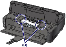 - 印表機內部右側或左側空隙 (C) 中是否仍有紙張碎片?