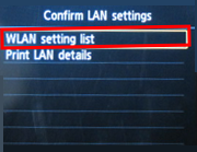 按鈕選擇「無線 LAN 設定清單 (WLAN setting list)」,然後按下「OK」按鈕。