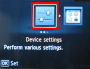 按鈕選擇「設備設定 (Device settings)」,然後按下「OK」按鈕。