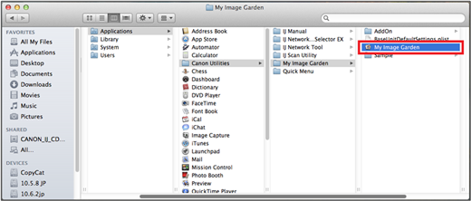 1. 按一下 /Applications/Canon Utilities/My Image Garden,然後按一下 My Image Garden 圖示。