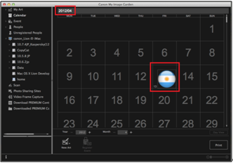 3. 在首次啟動時,My Image Garden 以日曆檢視顯示主視窗。