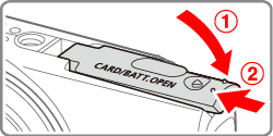- 確保以正確方向插入記憶卡。以錯誤方向插入記憶卡可能會損壞相機。