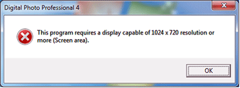 顯示器的解像度設定為低於 1024 × 720 時,Digital Photo Professional 無法運行。
