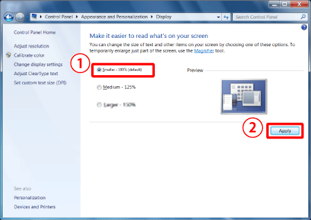 4-1. 如果大小未設定為 [小 – 100% (預設)],則選擇 [小 – 100% (預設)] (