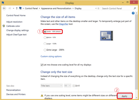 3. 按一下 [改變文字和其他項目的大小 (Make text and other items larger or smaller)]。