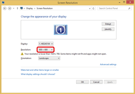 5-2. 將滑塊向上移動以選擇 1024 × 720 或更高的解像度大小。